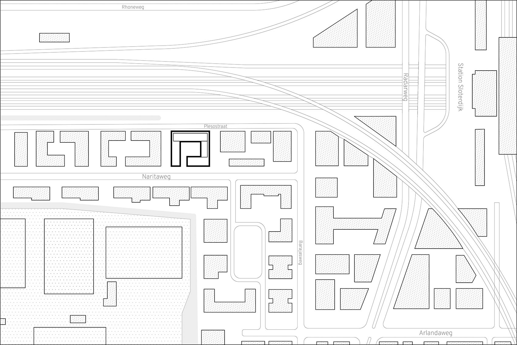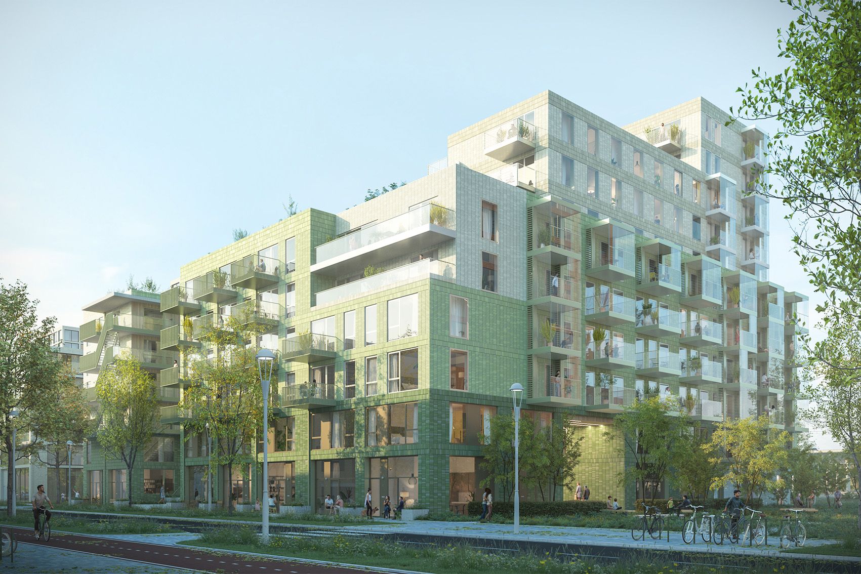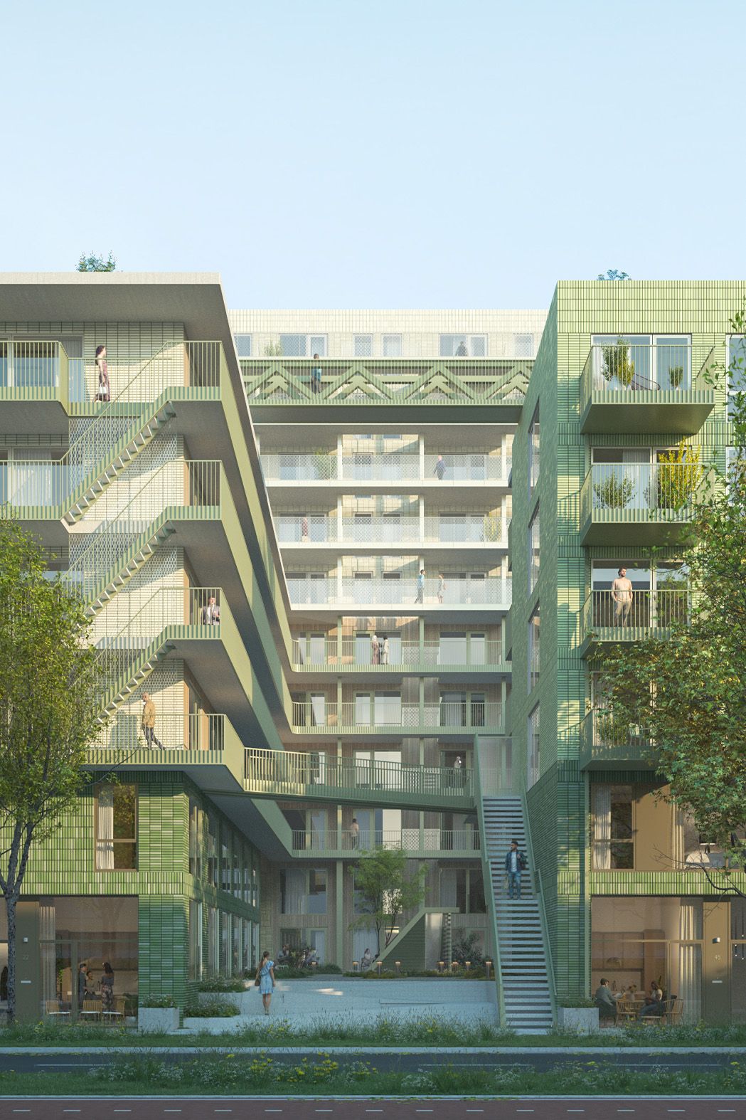 Onze architecten zijn door Stelt uitgedaagd om comfortabel wonen te ontwerpen met een groen park aan de ene zijde en aan de andere de ruige logistiek die Sloterdijk eigen is.