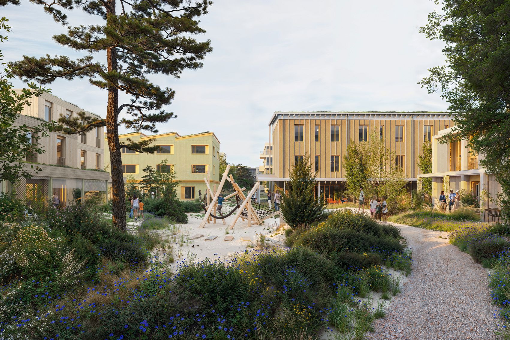 Aan het kalme én zonnige binnengebied liggen houten leefgalerijen. Aan de zuidzijde grenst het complex aan Sportpark Spieringhorn en maken we met maisonnettes en appartementen-met-balkons een zachte overgang naar dit deel van de Brettenzone.