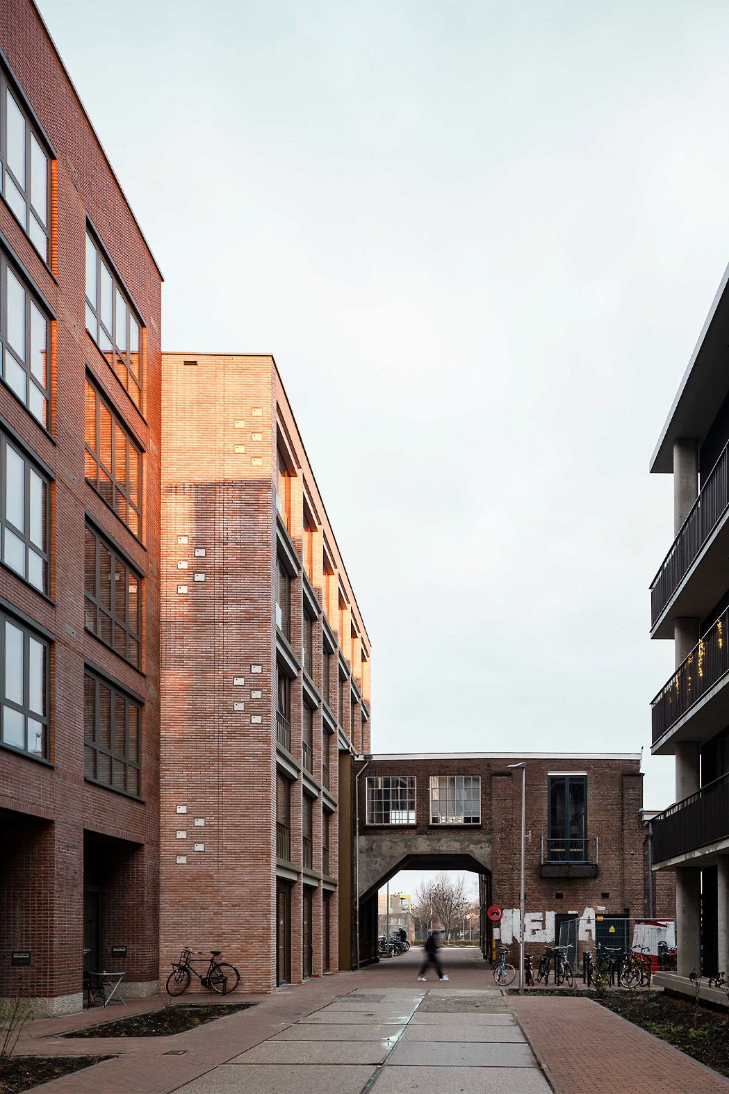 Voor de nieuwbouw in Wisselspoor namen we ‘de poort’ als uitgangspunt. De beeldbepalende poort van de Wagenmakerij staat er namelijk nog altijd fier overeind. Die ruwe constructie hebben we opgenomen in bouwdeel De Machinist en fungeert opnieuw als doorgang en entree. En als eyecatcher. Dit stuk historie geeft de routing meerwaarde, versterkt er de beleving van het thuiskomen.
